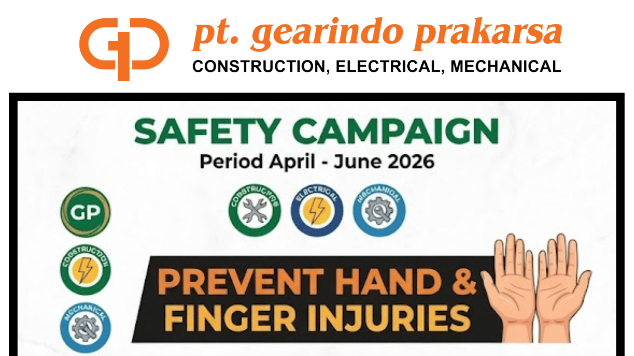 In conducting The Business, PT Gearindo Prakarsa is Supported by 3 Main Pillars: - Safety - Quality - Client Satisfaction.