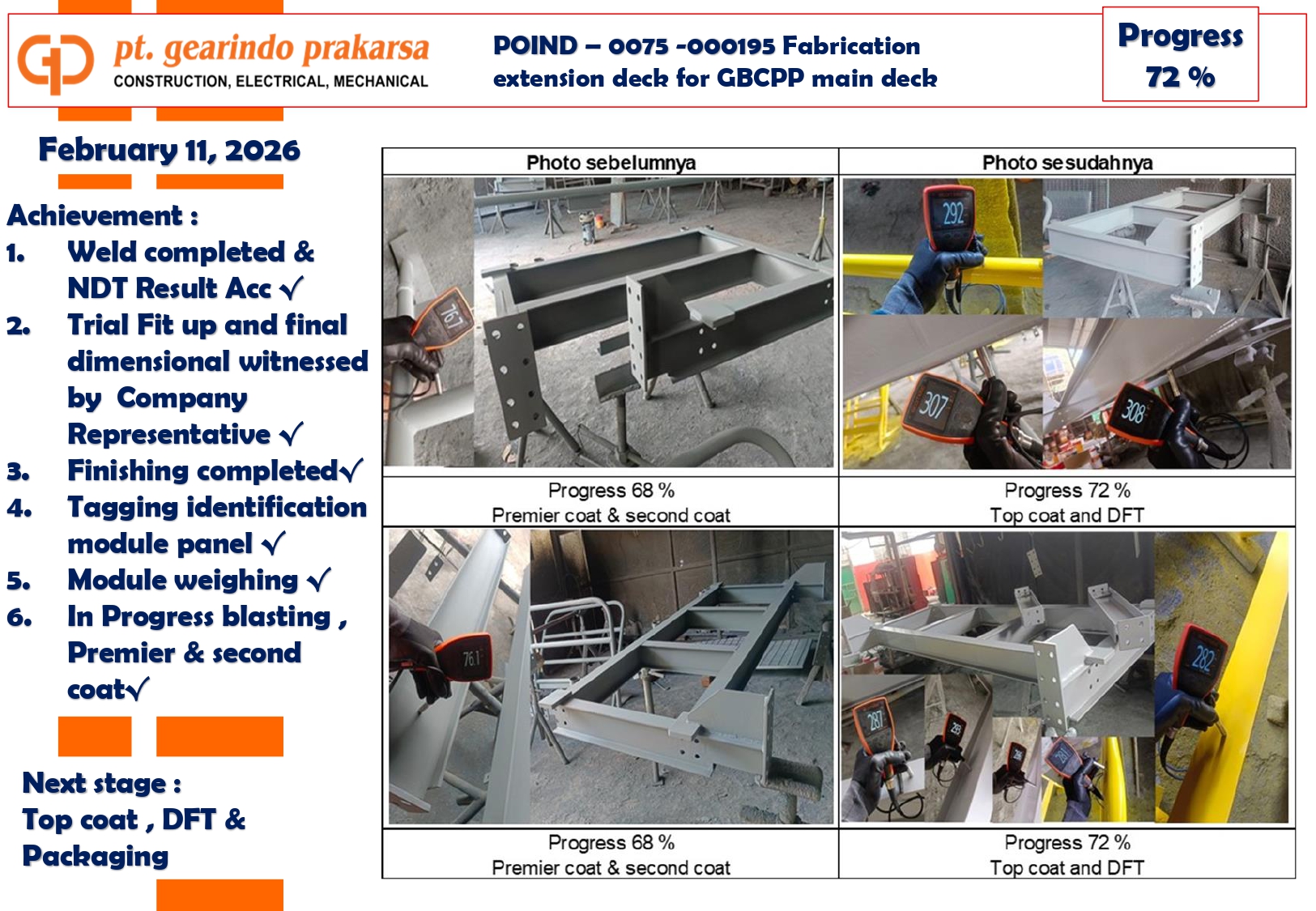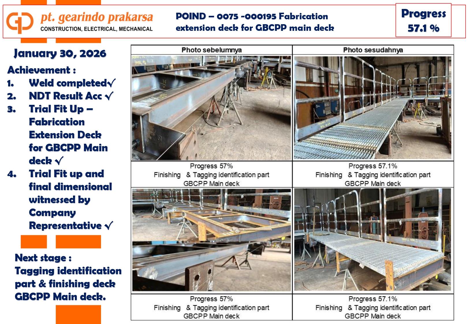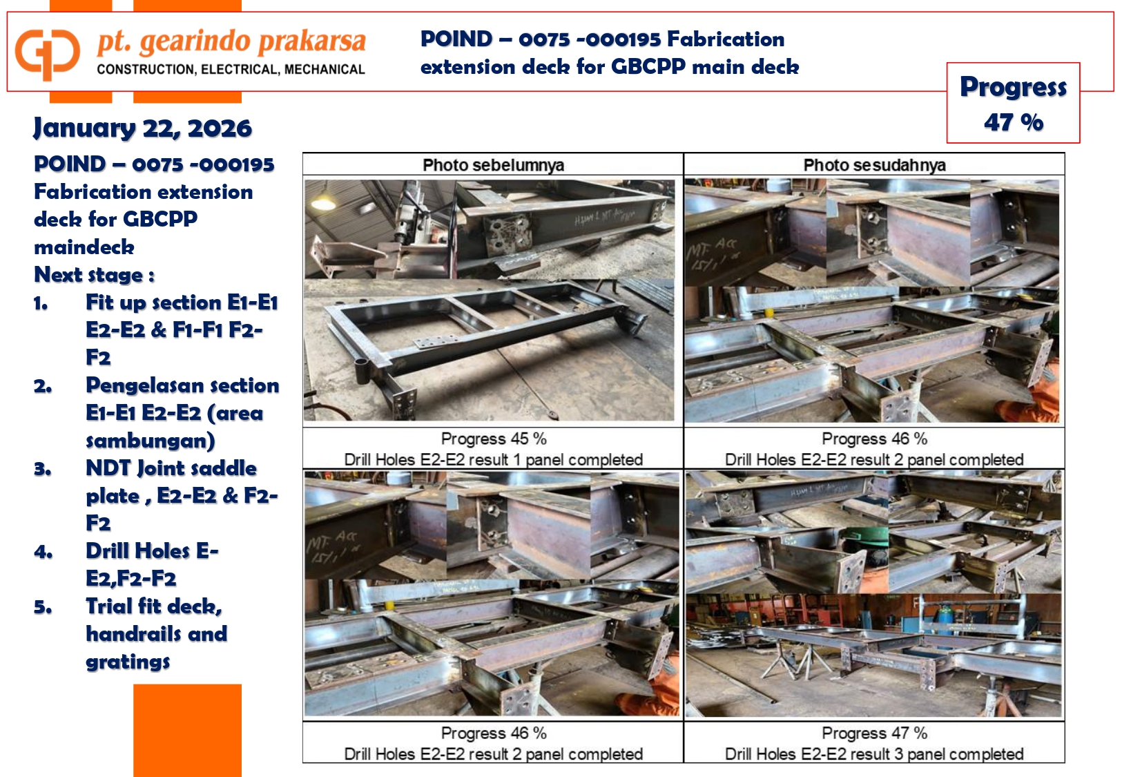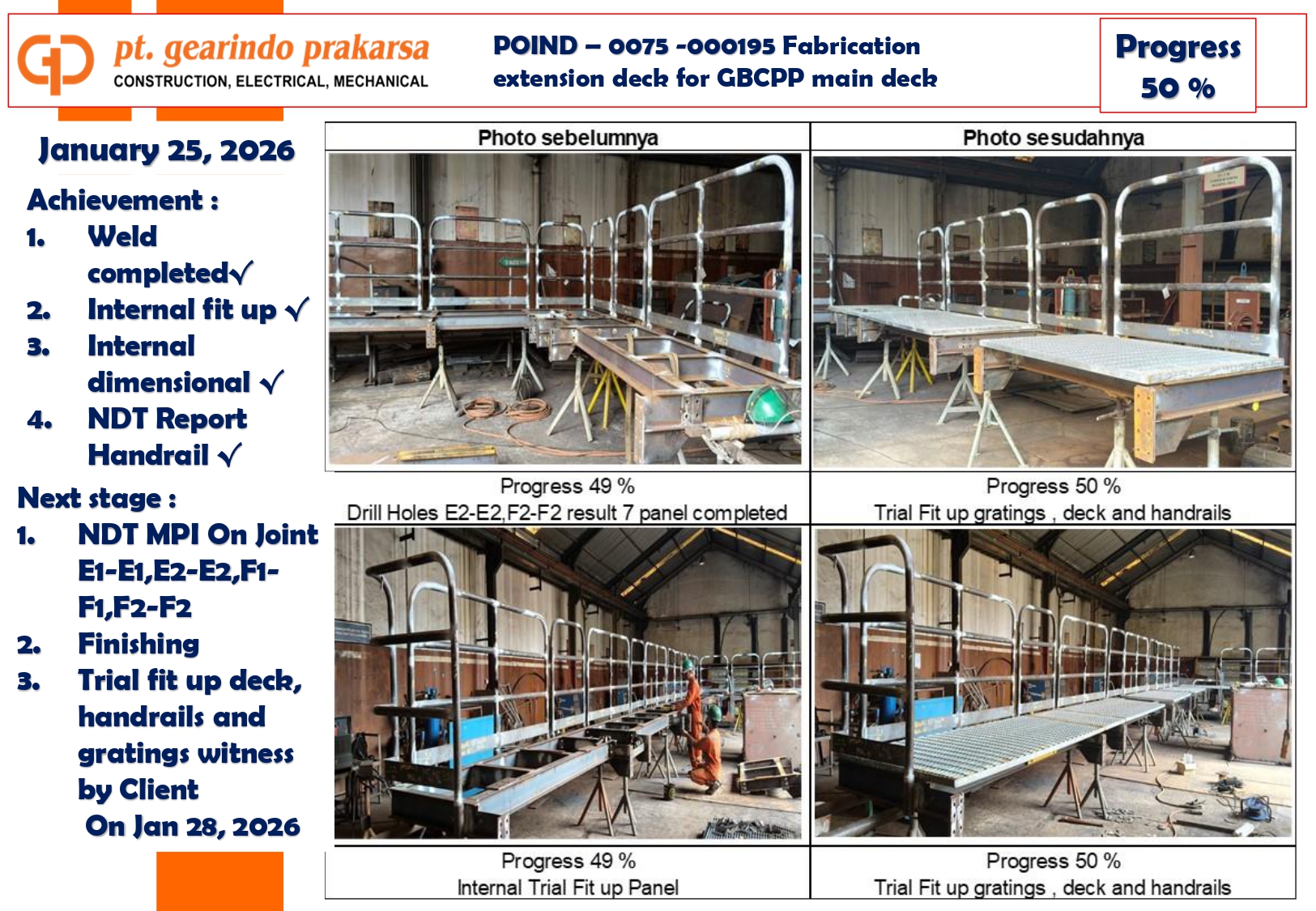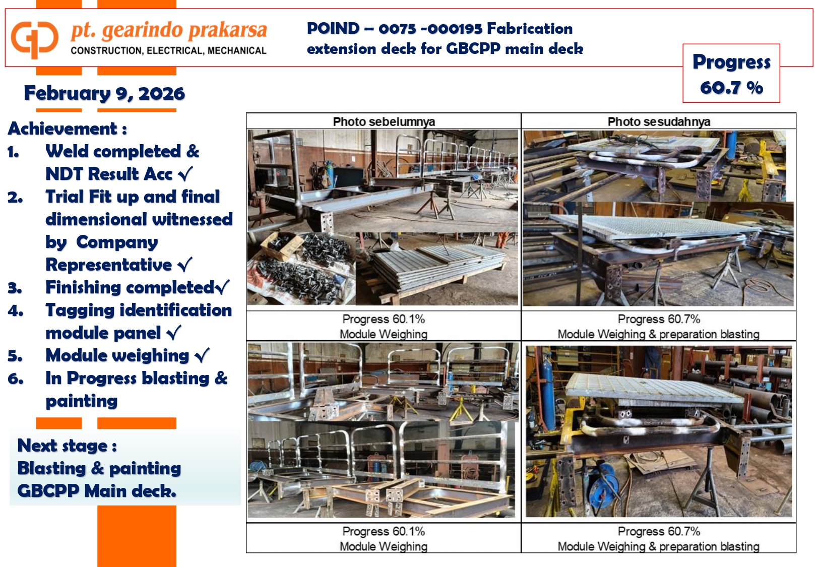 These achievements are a direct reflection of PT Gearindo Prakarsa’s Vision, Mission, and Core Values (GEARS). By combining advanced technology with disciplined project management, we continue our mission to be a trusted partner in the energy sector—consistently delivering high-quality services that prioritize technical excellence, safety, and customer satisfaction.