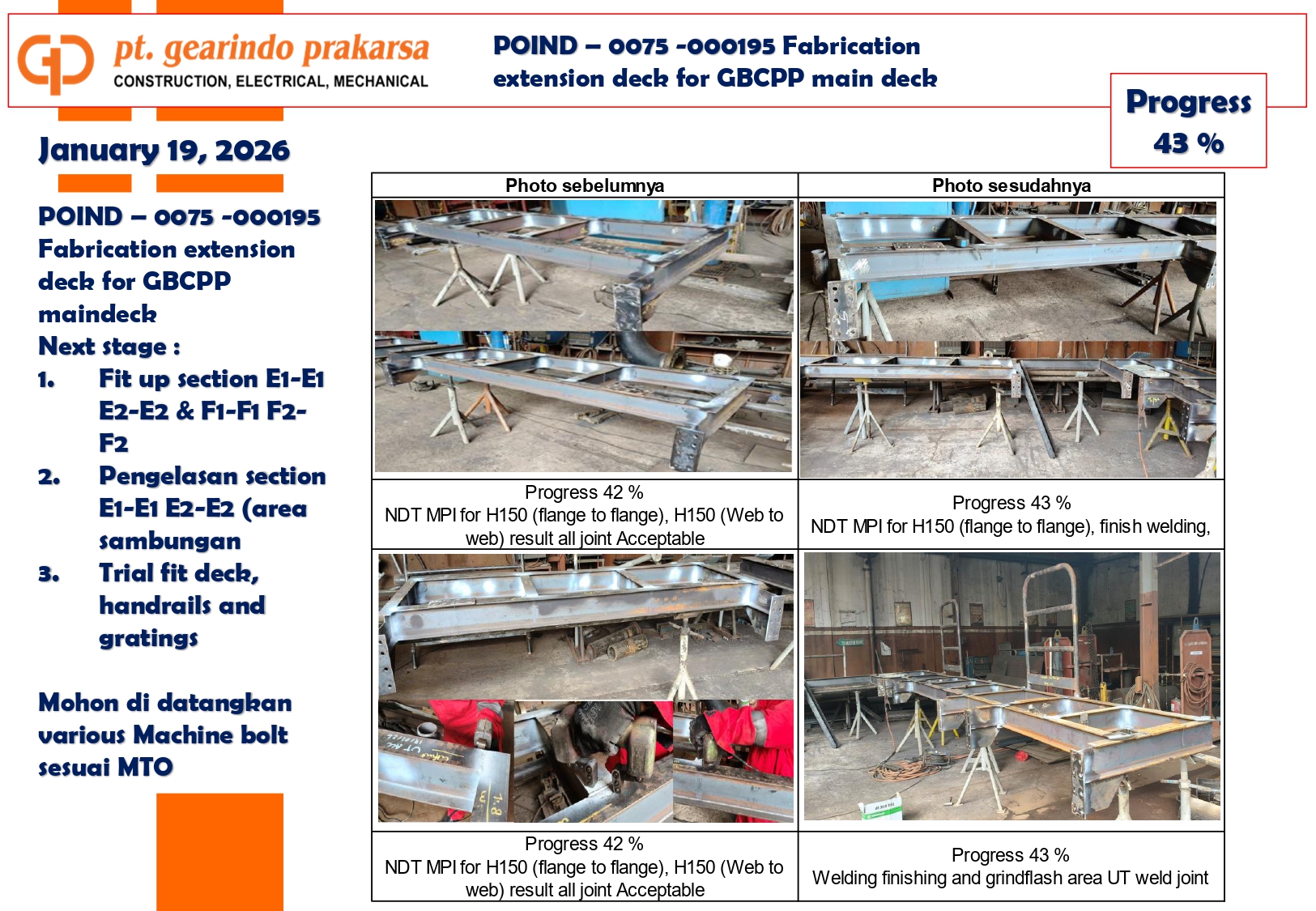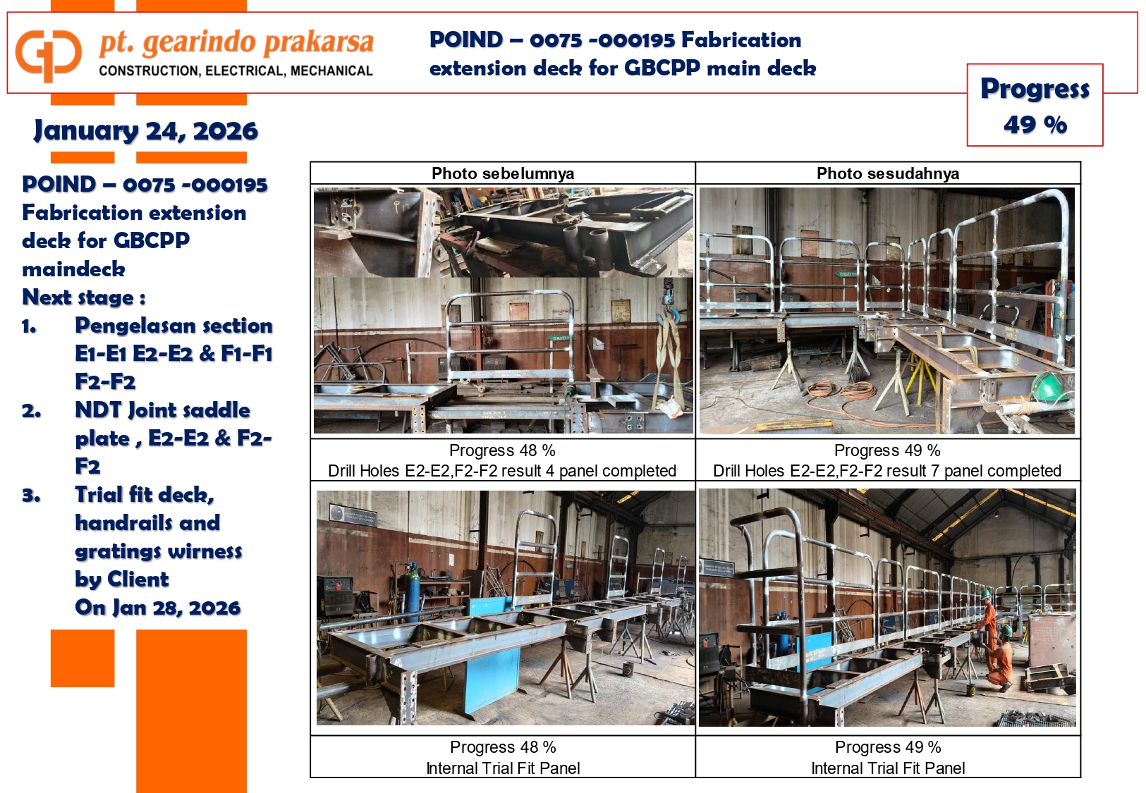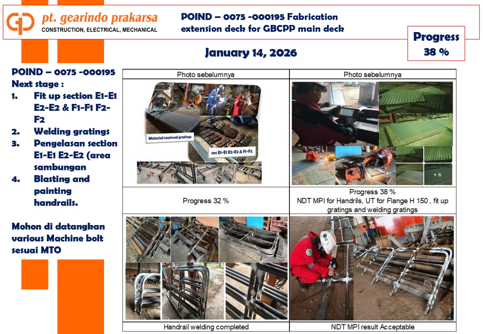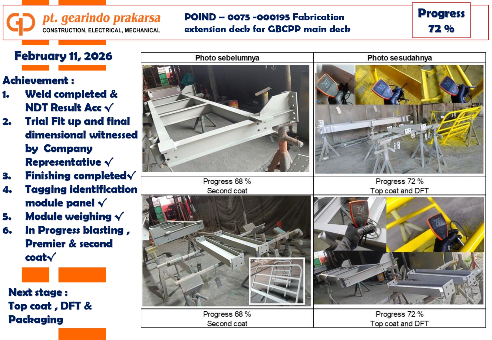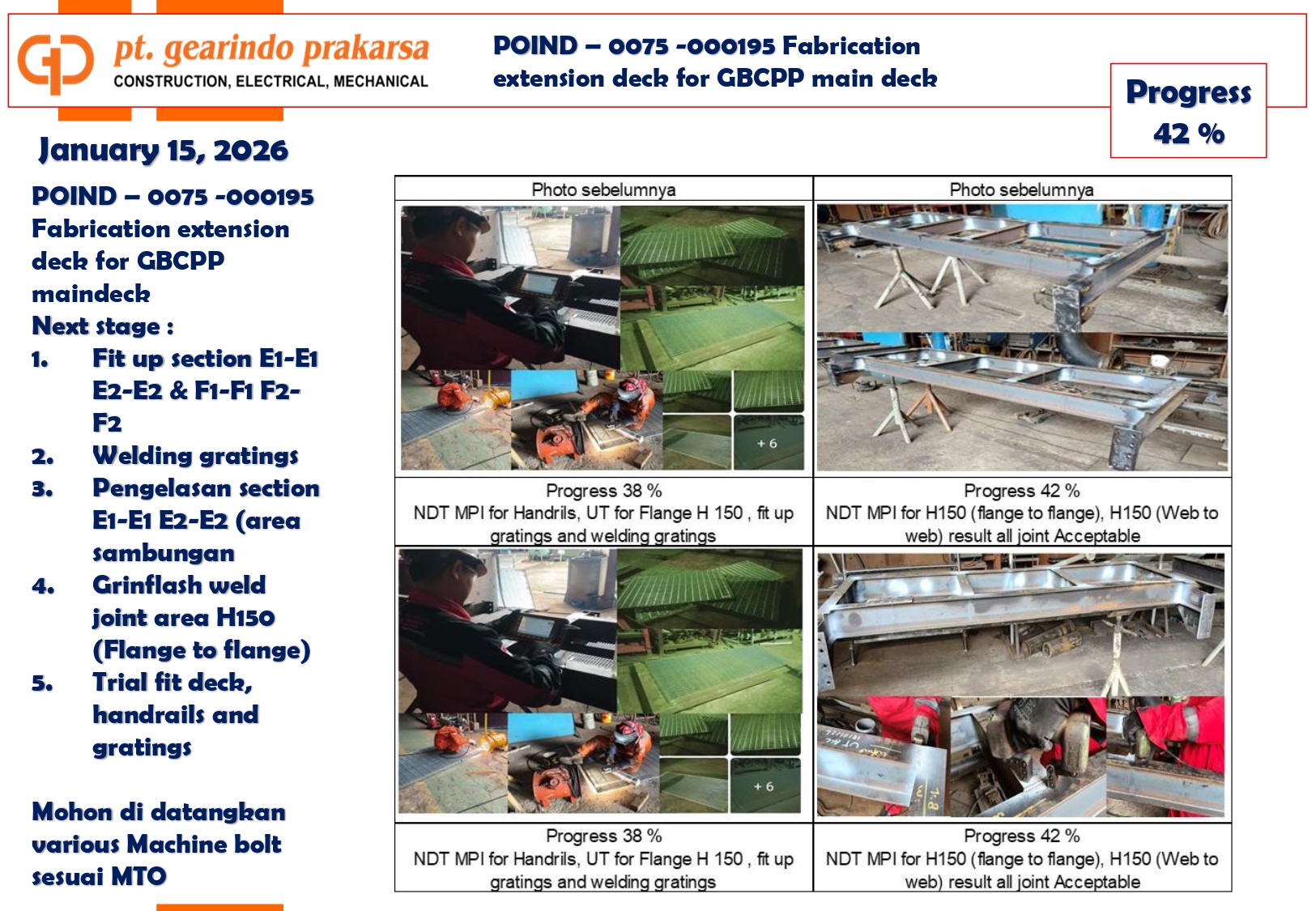 These achievements are a direct reflection of PT Gearindo Prakarsa’s Vision, Mission, and Core Values (GEARS). By combining advanced technology with disciplined project management, we continue our mission to be a trusted partner in the energy sector—consistently delivering high-quality services that prioritize technical excellence, safety, and customer satisfaction.