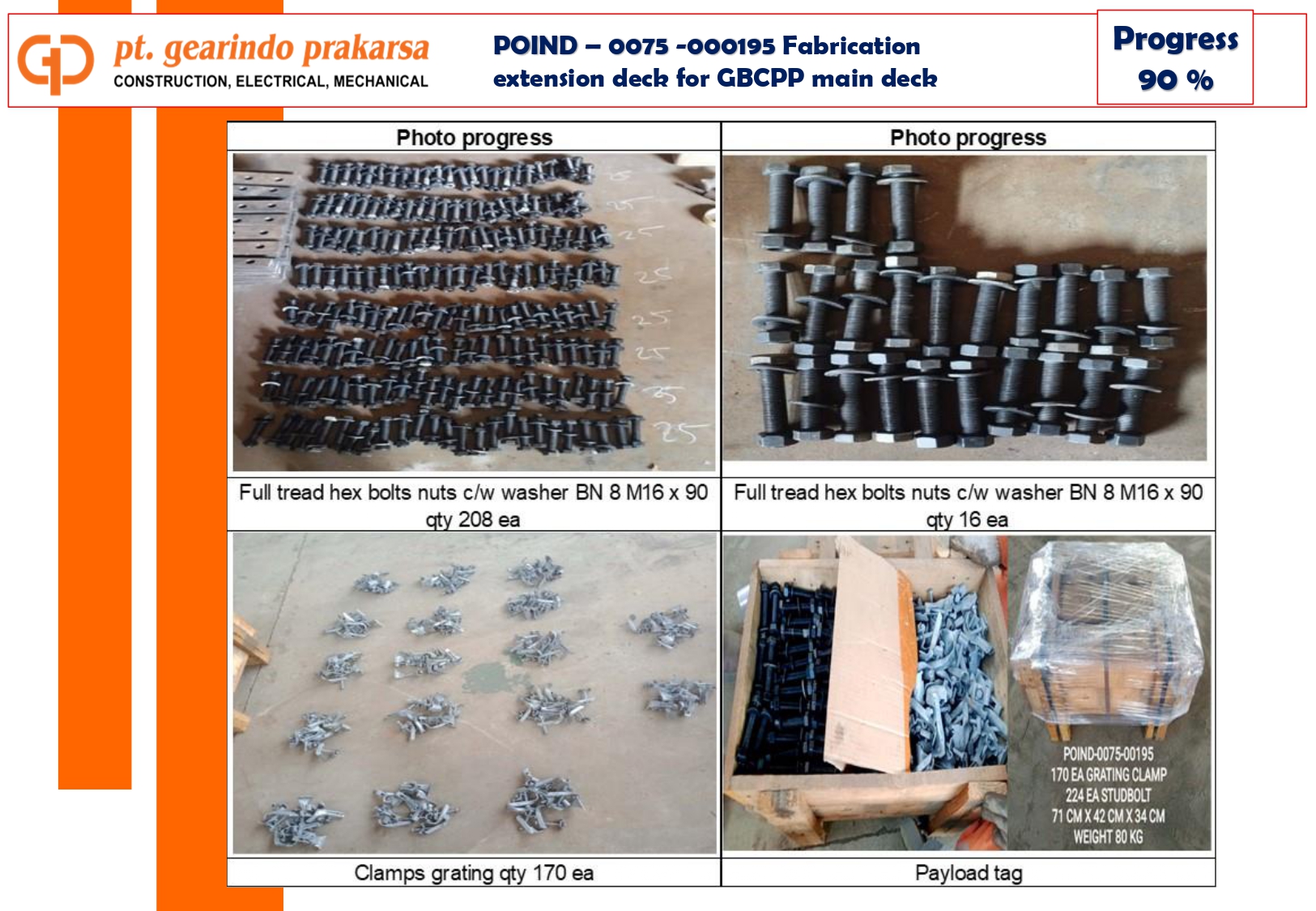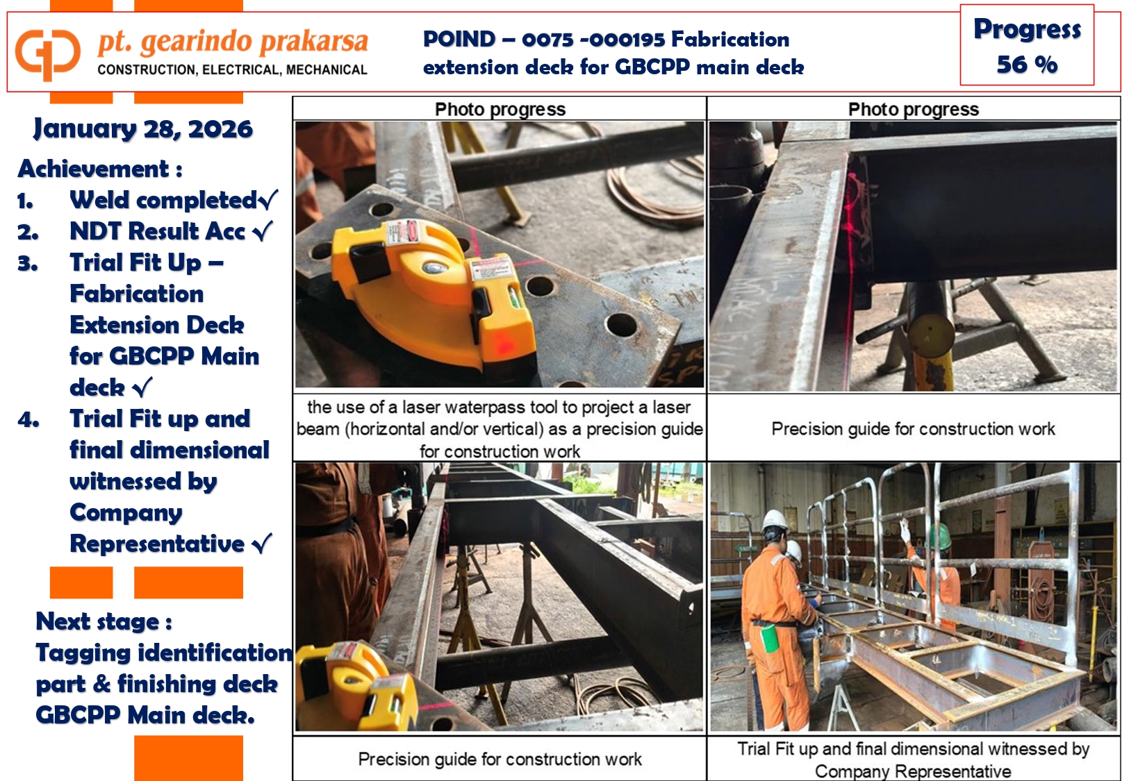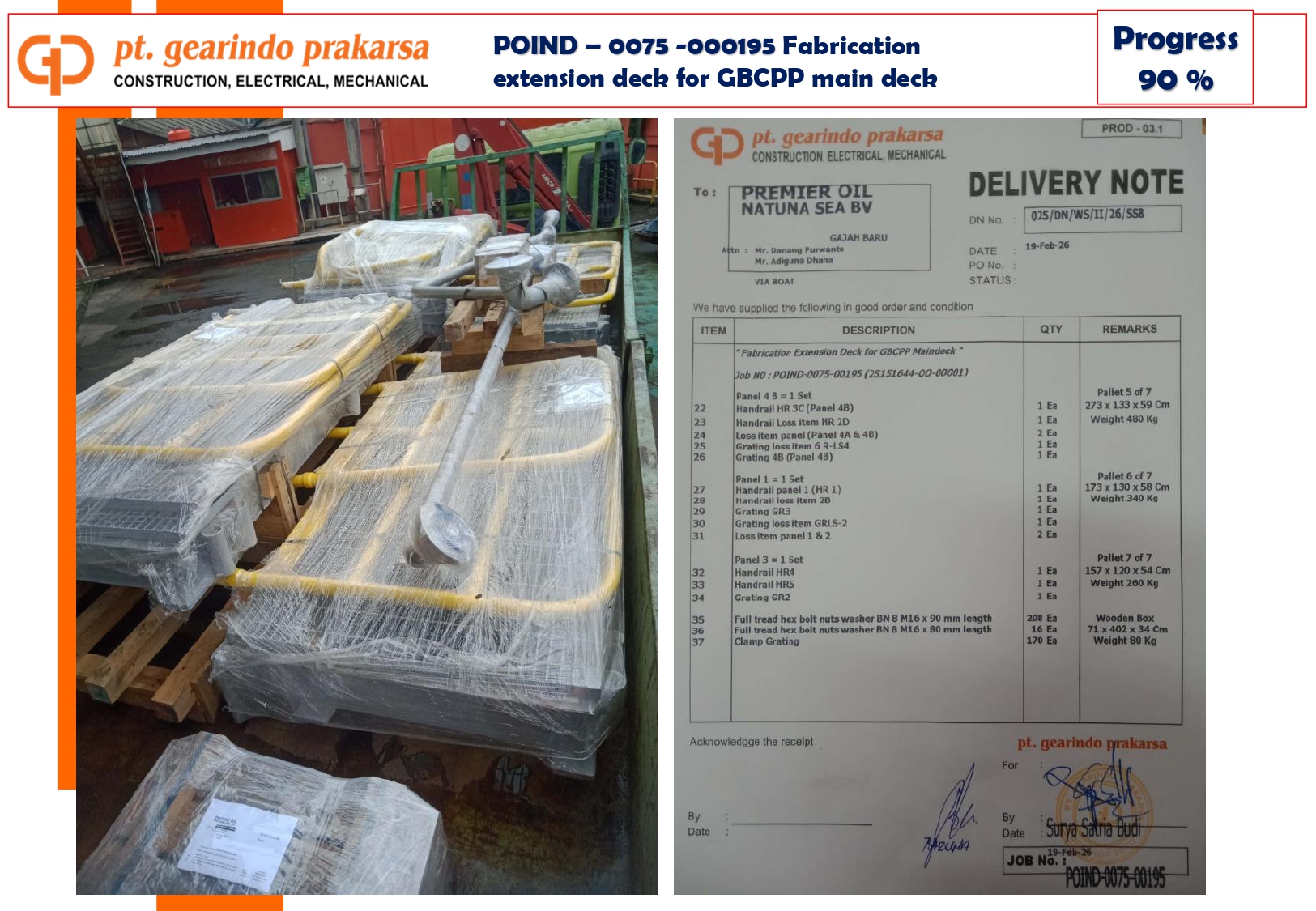 - Deck Panel Weighing: Accurate weighing and dimensional data for each panel (e.g., Panel 4C at 470 kg, Panel 4D at 530 kg) were provided to the client to facilitate safe lifting and installation at the site.